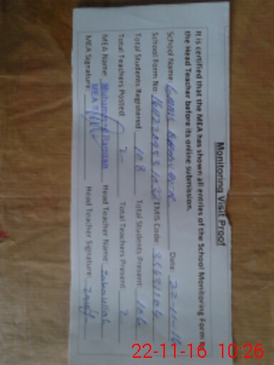 | Certified that this School was Inspected by the Undersigned MEA/DMO Today and the Information Stated Above is as Per Record. | |||||