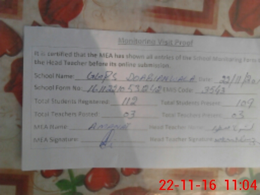 | EMIS Code: 35430946 | Name of School: GGPS DOABIAN WALA | |||