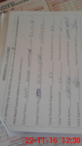 | Attendance Register | Head Teacher | MEA with School | Visit Proof |