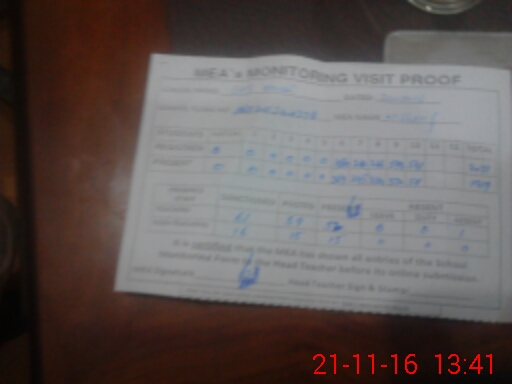| Attendance Register | Head Teacher | MEA with School | Visit Proof |