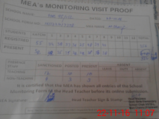 | Certified that this School was Inspected by the Undersigned MEA/DMO Today and the Information Stated Above is as Per Record. | |||||