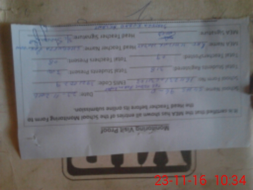 | Attendance Register | Head Teacher | MEA with School | Visit Proof |