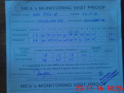 | Certified that this School was Inspected by the Undersigned MEA/DMO Today and the Information Stated Above is as Per Record. | |||||