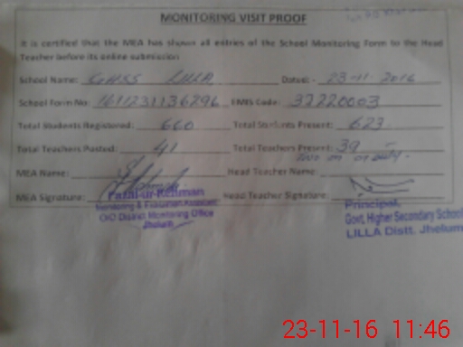 | Certified that this School was Inspected by the Undersigned MEA/DMO Today and the Information Stated Above is as Per Record. | |||||