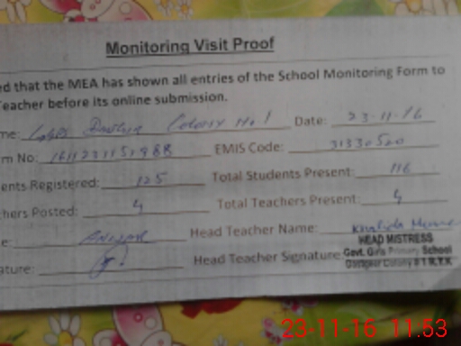 | EMIS Code: 31330520 | Name of School: GGPS DASTGEER COLONY NO. 1 | |||