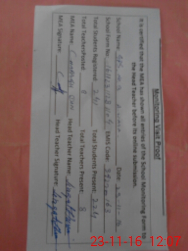 | Certified that this School was Inspected by the Undersigned MEA/DMO Today and the Information Stated Above is as Per Record. | |||||