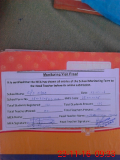 | Attendance Register | Head Teacher | MEA with School | Visit Proof |