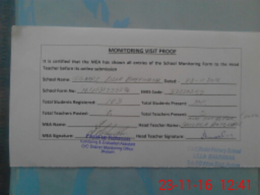 | Attendance Register | Head Teacher | MEA with School | Visit Proof |