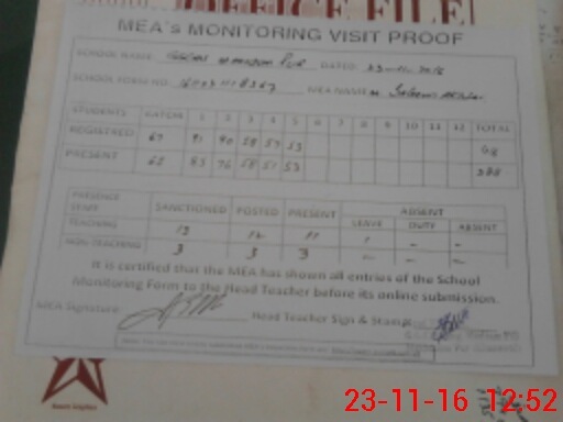 | Attendance Register | Head Teacher | MEA with School | Visit Proof |
