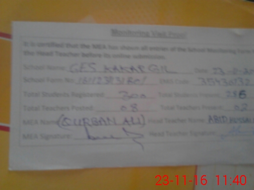 | EMIS Code: 35430132 | Name of School: GES KAKKAR GILL | |||