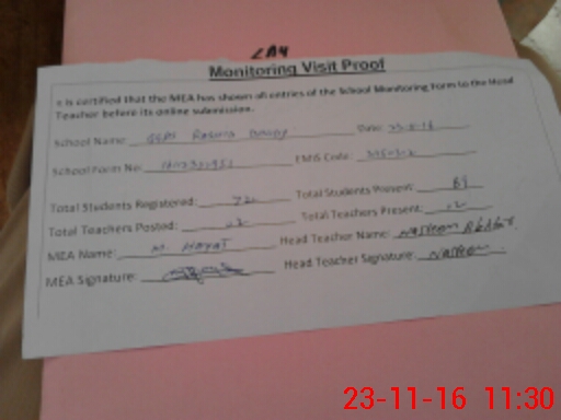 | Certified that this School was Inspected by the Undersigned MEA/DMO Today and the Information Stated Above is as Per Record. | |||||