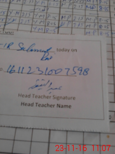 | Name: AB**** QA**** Designation: (School Headmaster's/Headmistress's) PST Phone/Cell Number: 03**** |