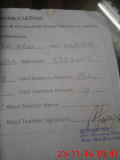 | Attendance Register | Head Teacher | MEA with School | Visit Proof |