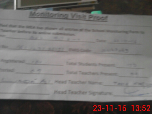 | Attendance Register | Head Teacher | MEA with School | Visit Proof |