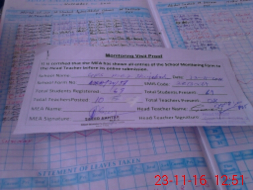 | Attendance Register | Head Teacher | MEA with School | Visit Proof |