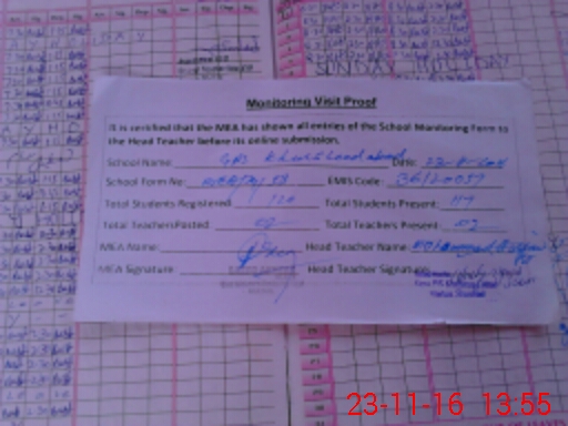 | Attendance Register | Head Teacher | MEA with School | Visit Proof |