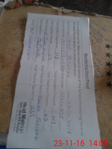 | Attendance Register | Head Teacher | MEA with School | Visit Proof |