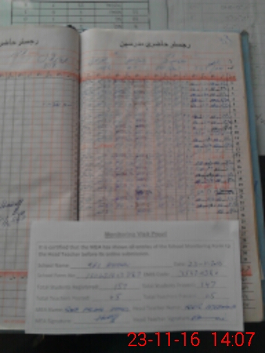 | Attendance Register | Head Teacher | MEA with School | Visit Proof |