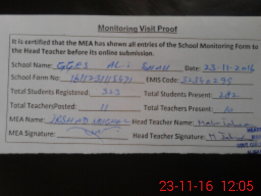 | EMIS Code: 32340299 | Name of School: GGES ALI SHAH | |||
