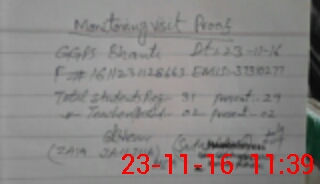 | Monitoring Date: 23-11-2016 | Start Time: 23-11-2016 10:55 AM | End Time: 23-11-2016 11:40 AM | Name of MEA: ZA**** ULAB**** (R**** | |