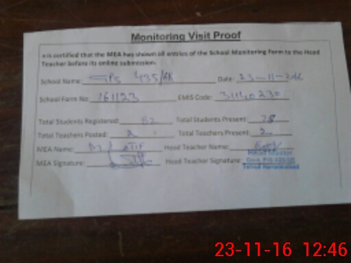 | Attendance Register | Head Teacher | MEA with School | Visit Proof |