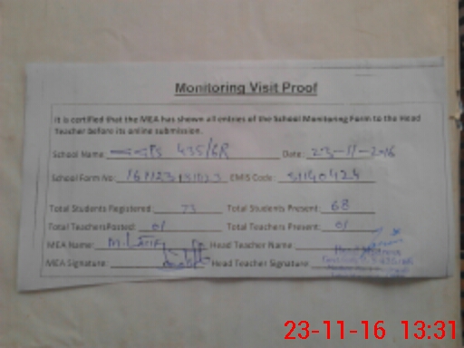 | Certified that this School was Inspected by the Undersigned MEA/DMO Today and the Information Stated Above is as Per Record. | |||||
