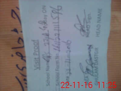 | School Visited by School Health & Nutrition Supervisor (No. of Visits) | 1 | Name1: | Javed Iqbal | Name2: | |