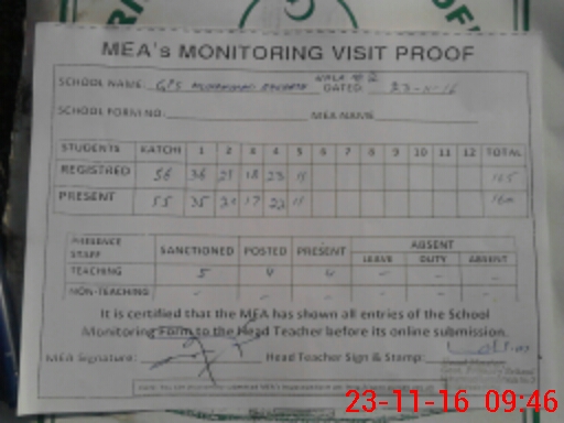 | Attendance Register | Head Teacher | MEA with School | Visit Proof |