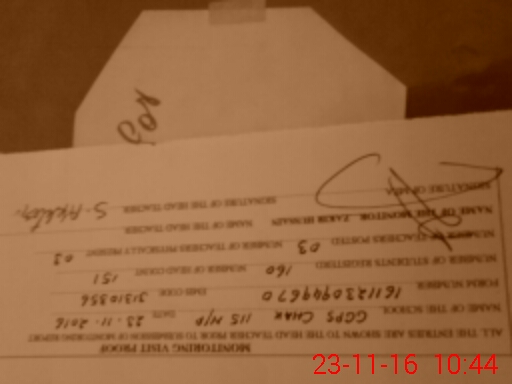 | Monitoring Date: 23-11-2016 | Start Time: 23-11-2016 09:49 AM | End Time: 23-11-2016 10:45 AM | Name of MEA: Za**** Hu**** | |