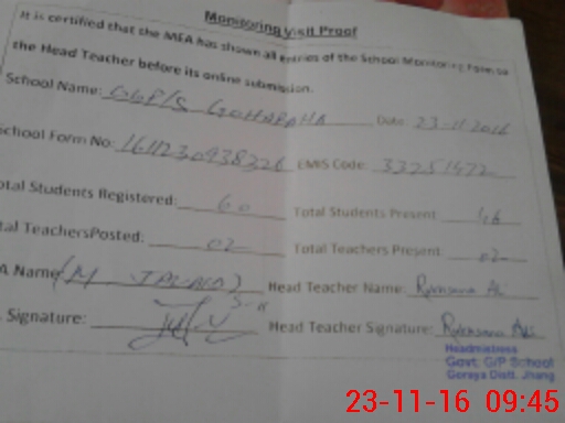 | Certified that this School was Inspected by the Undersigned MEA/DMO Today and the Information Stated Above is as Per Record. | |||||