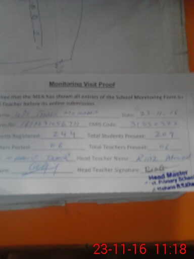 | Attendance Register | Head Teacher | MEA with School | Visit Proof |