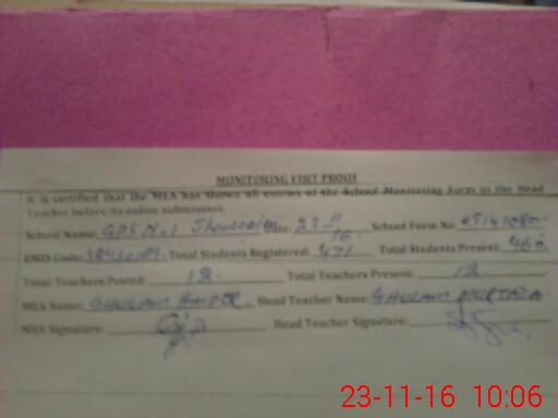 | Attendance Register | Head Teacher | MEA with School | Visit Proof |