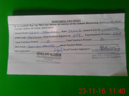 | Attendance Register | Head Teacher | MEA with School | Visit Proof |