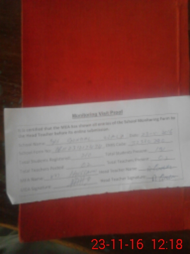 | Attendance Register | Head Teacher | MEA with School | Visit Proof |
