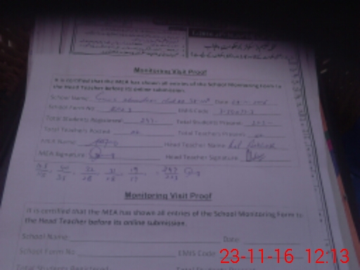 | Attendance Register | Head Teacher | MEA with School | Visit Proof |