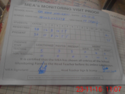 | Certified that this School was Inspected by the Undersigned MEA/DMO Today and the Information Stated Above is as Per Record. | |||||