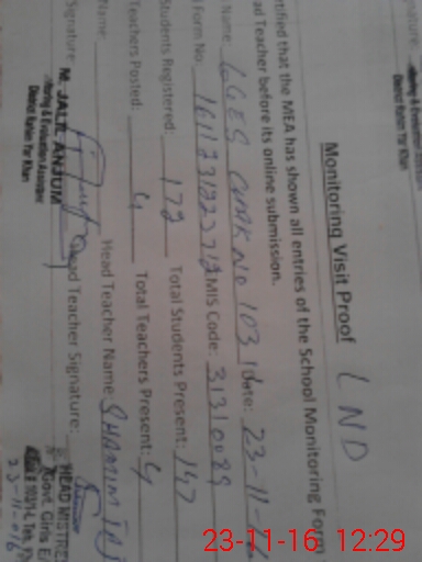 | Attendance Register | Head Teacher | MEA with School | Visit Proof |