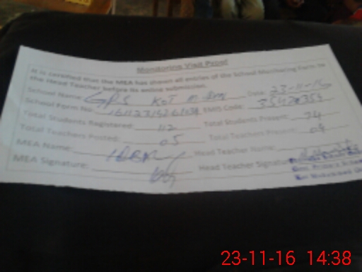 | EMIS Code: 35420354 | Name of School: GPS KOT MUHAMMAD DIN | |||