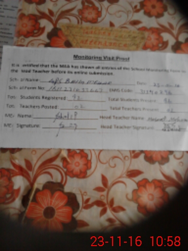 | Attendance Register | Head Teacher | MEA with School | Visit Proof |