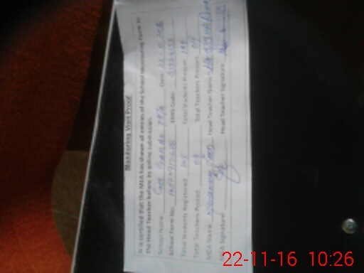 | Attendance Register | Head Teacher | MEA with School | Visit Proof |