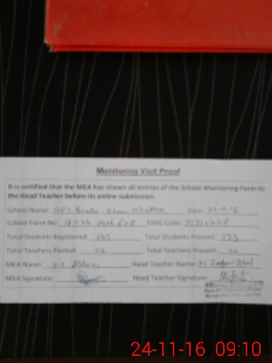 | Certified that this School was Inspected by the Undersigned MEA/DMO Today and the Information Stated Above is as Per Record. | |||||