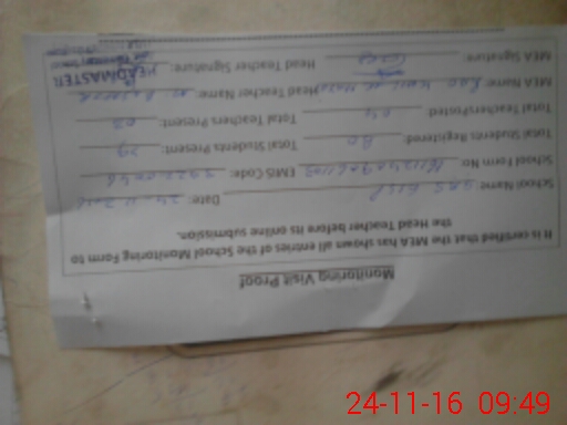 | Attendance Register | Head Teacher | MEA with School | Visit Proof |
