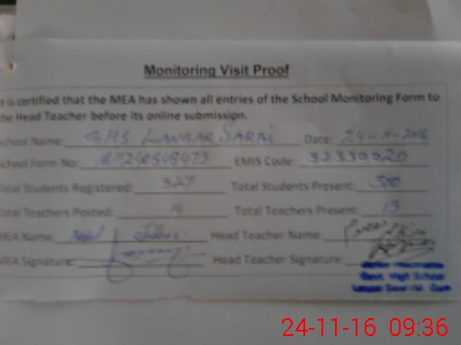 | EMIS Code: 32330020 | Name of School: GHS LANGER SARAI | |||