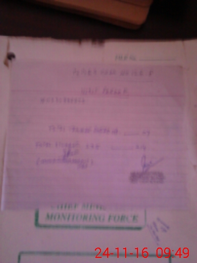 | Monitoring Date: 24-11-2016 | Start Time: 24-11-2016 08:59 AM | End Time: 24-11-2016 09:53 AM | Name of MEA: Mu**** Ak**** | |
