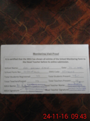 | Certified that this School was Inspected by the Undersigned MEA/DMO Today and the Information Stated Above is as Per Record. | |||||