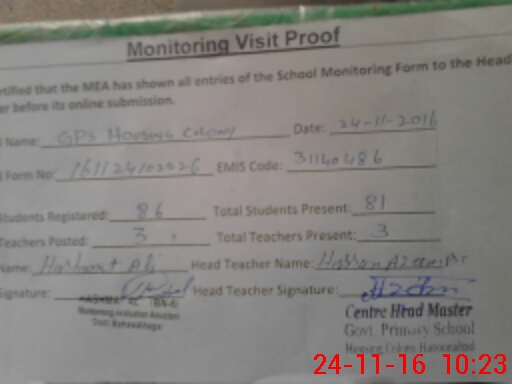 | EMIS Code: 31140486 | Name of School: GPS HOUSING COLONY | |||