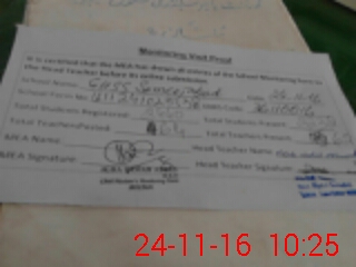 | Attendance Register | Head Teacher | MEA with School | Visit Proof |
