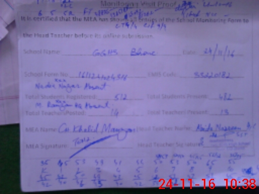 | Attendance Register | Head Teacher | MEA with School | Visit Proof |