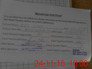 | Attendance Register | Head Teacher | MEA with School | Visit Proof |
