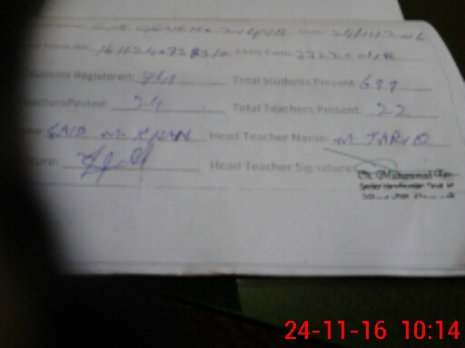 | Name: Ma**** Ulha**** Designation: (School Headmaster's/Headmistress's) Principal Phone/Cell Number: 03**** |